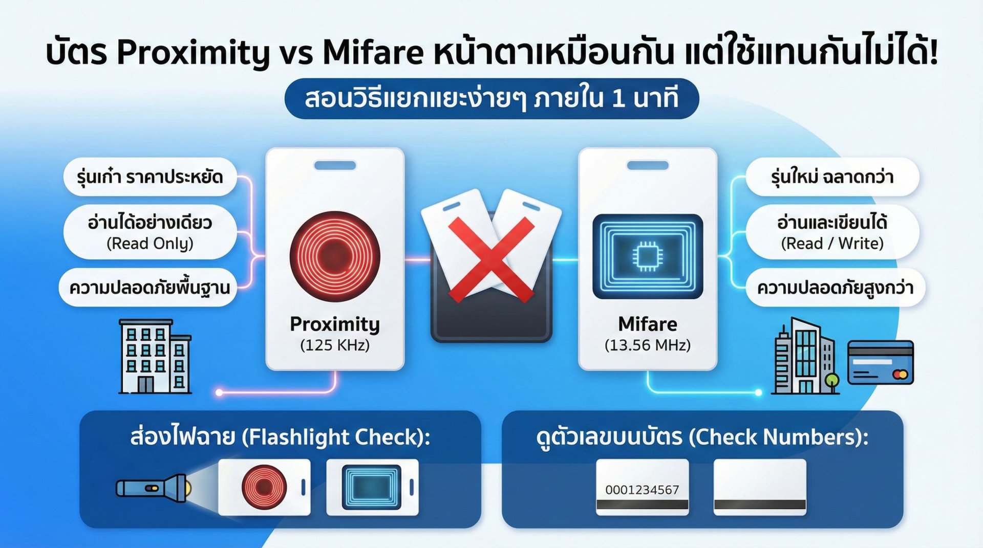 บัตร Proximity กับ Mifare หน้าตาเหมือนกัน แต่ใช้แทนกันไม่ได้! สอนวิธีแยกแยะง่ายๆ